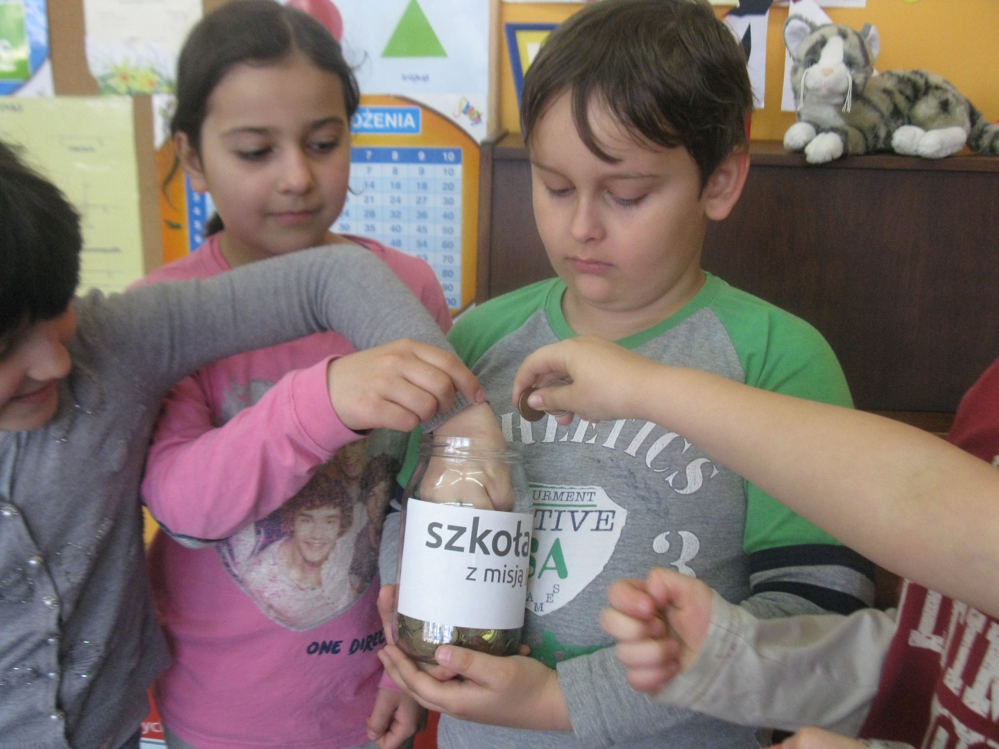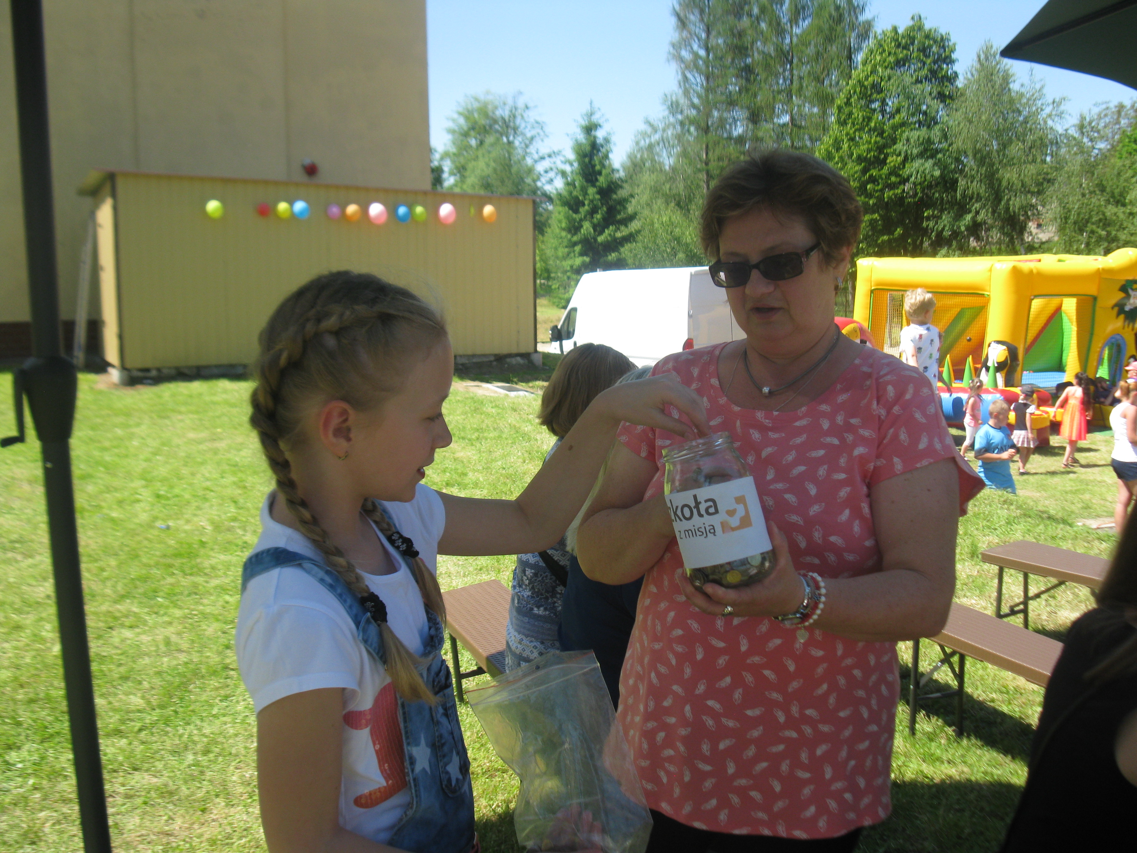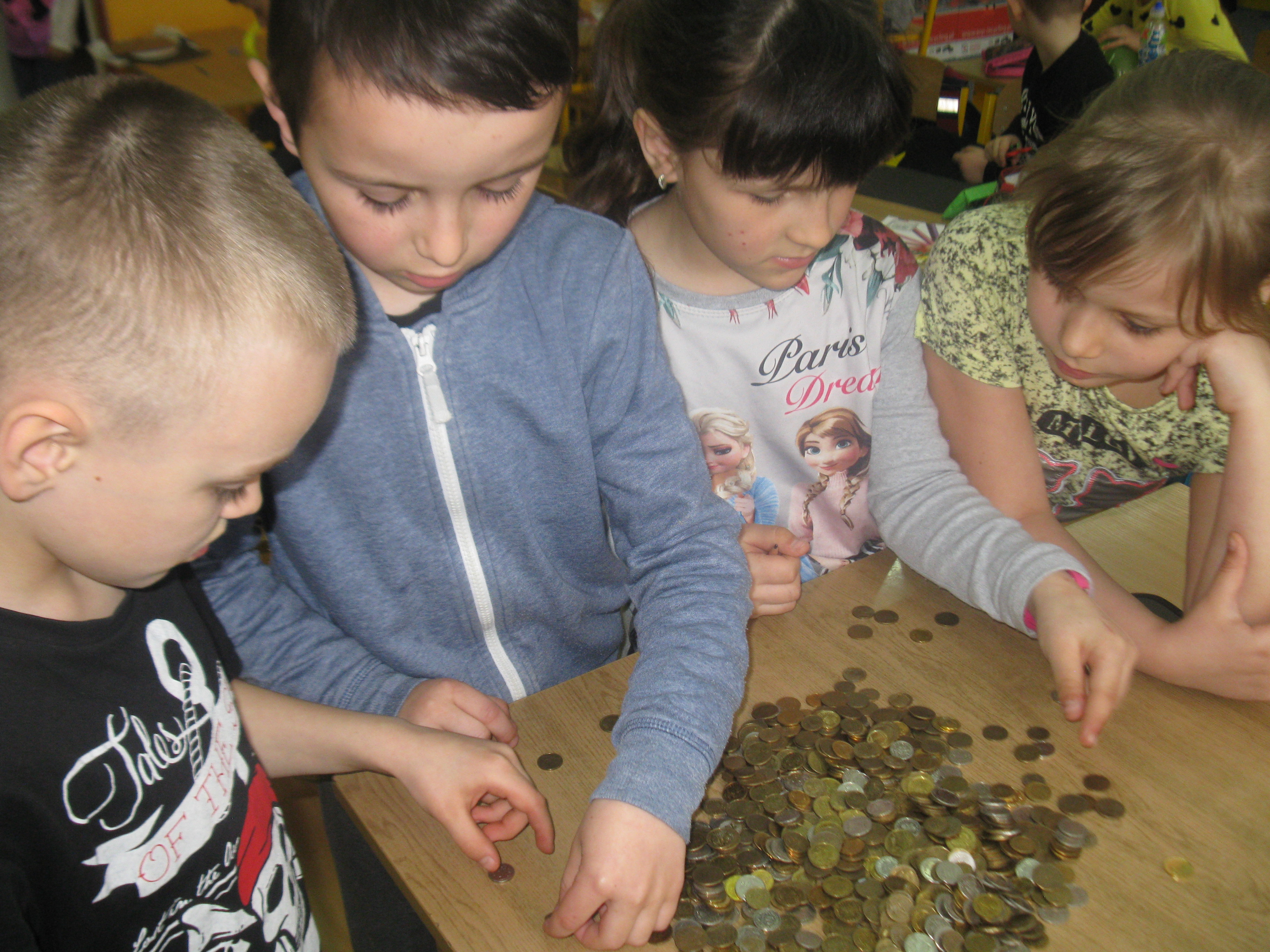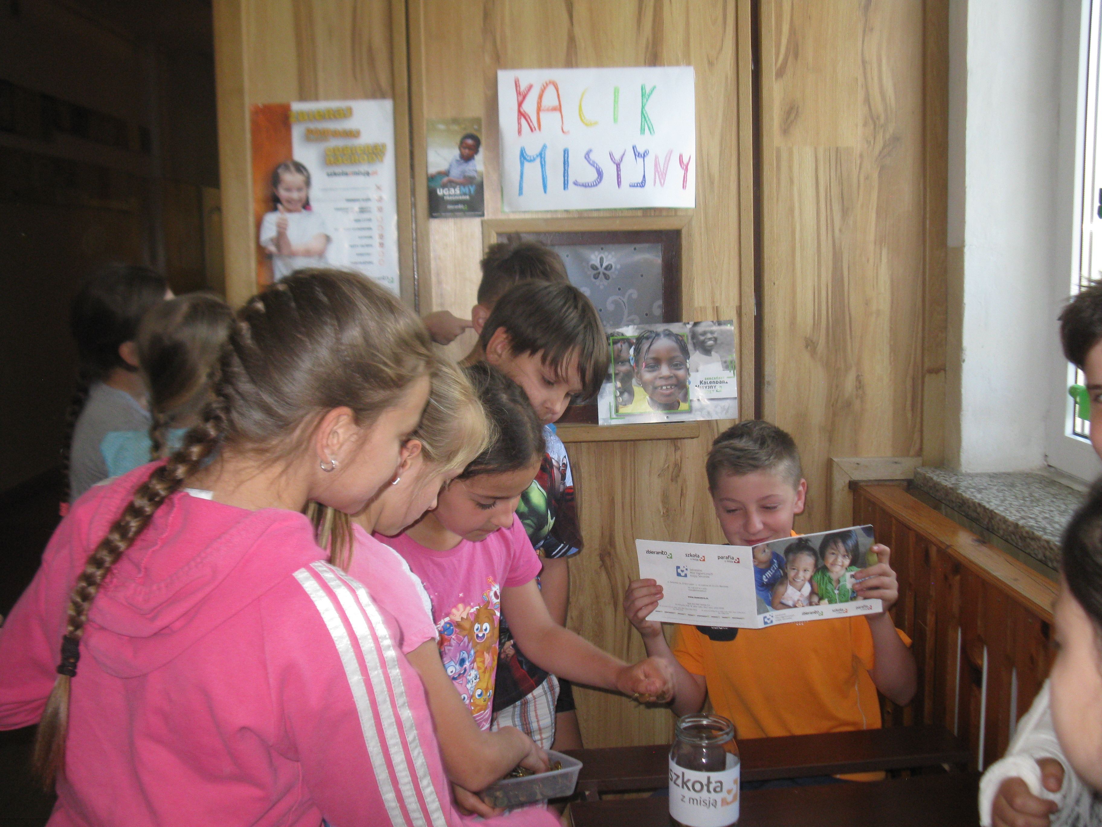 Równolegle prowadziliśmy zbiórkę pieniędzy „ dobra moneta”. Działania przebiegały w trzech etapach. Najpierw „ skarbonka” stała na parapecie w klasie II. Tam uczniowie przynosili drobne monety. Później , po zorganizowaniu kącika misyjnego na szkolnym korytarzu, pełniliśmy dyżury w towarzystwie naszego słoiczka, oczywiście. Monet przybywało. Słoik stawał się coraz cięższy. Ale to żaden problem – przecież można go opróżnić. Tak też zrobiliśmy, wrzucając monety do foliowej reklamówki. Kolejny etap to zbiórka monet podczas szkolnego pikniku. Uczestnicy imprezy zachęceni przez pana dyrektora nie żałowali grosza. Wszak cel akcji - jak najbardziej szczytny.A jedna pani, babcia naszego kolegi, obiecała dostarczyć jeszcze trochę pieniędzy, które zalegają jej w szufladzie. Wkrótce zajmiemy się segregacją monet. Będziemy je wkładać do woreczków według nominałów. Zajmą się tym drugoklasiści pod czujnym okiem pani wychowawczyni.Najbardziej angażujący się w akcję otrzymają pamiątkowe dyplomy i drobne upominki. Ale nie to jest najważniejsze...Wiadomo… Liczy się dobry czyn. I samo dobro, które zawsze powraca.