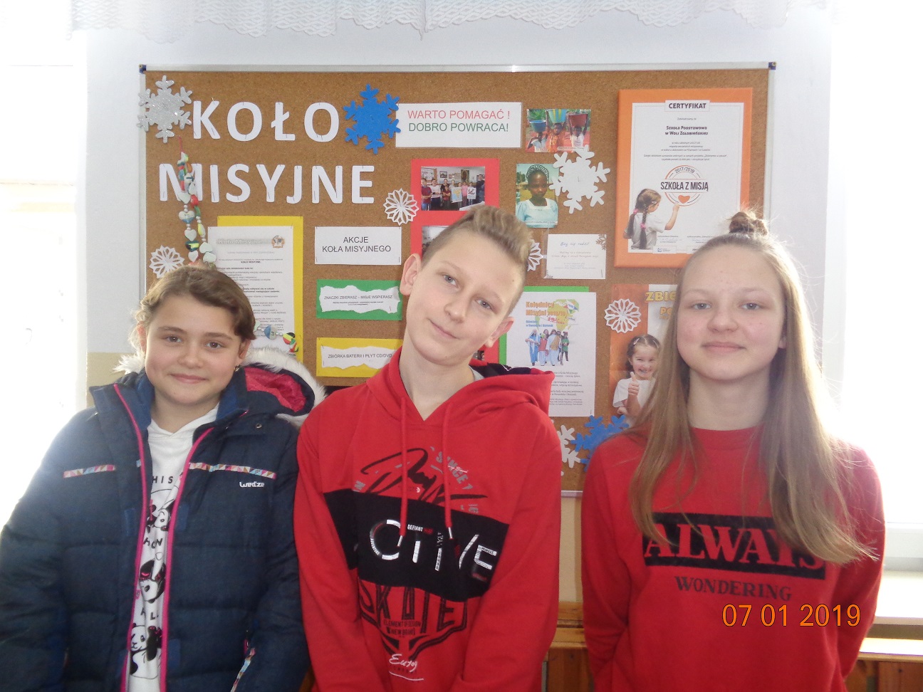 Nasze nowo założone Koło Misyjne (działające w szkole i w parafii) wraz z Samorządem Uczniowskim zaplanowało na I półrocze zbiórkę baterii. Udało nam się zebrać trzy kartony, które już odebrał od nas kurier. Ale zbiórka trwa nadal i myślimy, że damy radę podwoić, a może nawet potroić uzyskany wynik.