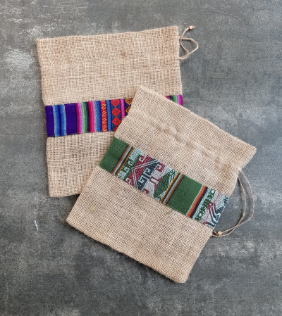 Sakiewka z Boliwii, którą otrymaliśmy od Sióstr Serafitek z Santa Cruz. Szyta ręcznie. Ściągana na sznurek.