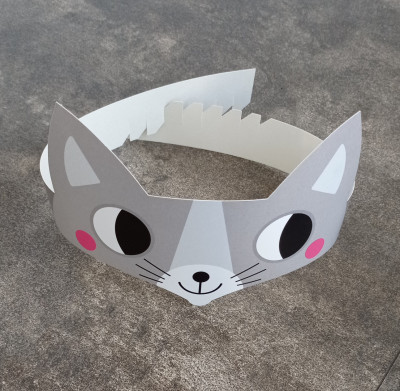 Papierowa opaska na głowę - kot, w kolorze szarym. Regulowana długość.