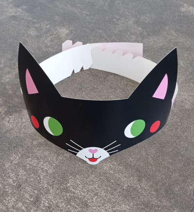 Papierowa opaska na głowę - kot, w kolorze czarno-różowym. Regulowana długość.