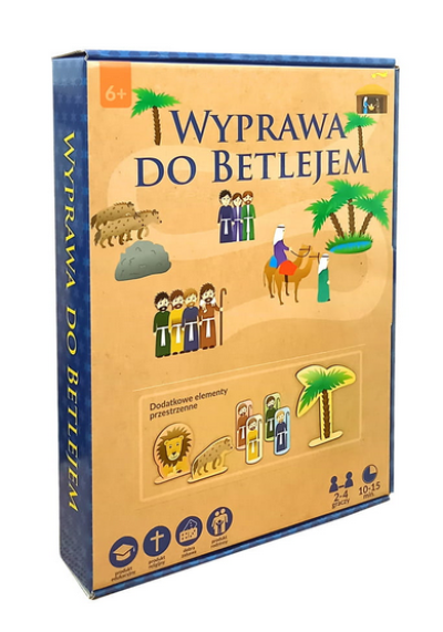 "Wyprawa do Betlejem" to prosta gra planszowa, w której gracze wcielają się w role pastuszków, ścigając się do stajenki, gdzie narodził się Pan Jezus. Każdy z graczy rozpoczyna swoją turę poprzez rzut kostką, a następnie przesuwa swojego pionka o liczbę pól odpowiadającą wyrzuconym oczkom na kostce. Jeśli gracz postawi swojego pionka na polu z opisem, musi przeczytać go na głos i postąpić zgodnie z instrukcją. Pierwszy gracz, który umieści swój pionek na ostatnim polu, wygrywa grę. Jeśli gracz postawi swój pionek na polu, na którym znajduje się już pionek innego gracza z opisem "przeczekaj kolejkę", gracze pomagają sobie nawzajem i nie muszą czekać w kolejce.